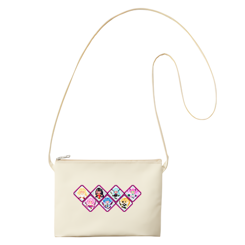 レトロテイストなドット絵のキル姫達が集合したイラストミニサコッシュです。