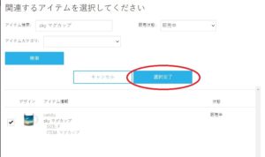 4:関連アイテムが表示されたら「選択完了」をクリック。