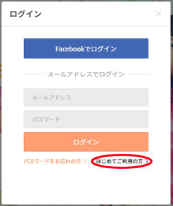 MEET MY GOODSのトップページ、「ログイン」をクリックし、右下の「はじめてご利用の方」から会員登録に進むことができます。