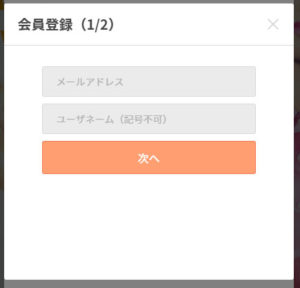 「メールアドレス」「ユーザネーム」を記入して、「次へ」をクリック。