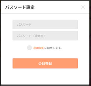 パスワードを入力し、利用規約をご確認のうえ、「利用規約に同意します」をクリックして、「会員登録」をクリック。