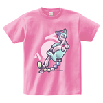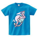 猫のような姿をしたこのキャラクターは、ダークパープルのクリーンで力強い線画で描かれており、Chicoa(チコー)の毛並みのパステル調のシアンやブルーの配色、ホットピンクのハートのアクセント、そしてスタイリッシュなスクリーントーンの陰影と見事なコントラストを成しています!