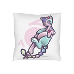 猫のような姿をしたこのキャラクターは、ダークパープルのクリーンで力強い線画で描かれており、Chicoa(チコー)の毛並みのパステル調のシアンやブルーの配色、ホットピンクのハートのアクセント、そしてスタイリッシュなスクリーントーンの陰影と見事なコントラストを成しています!
